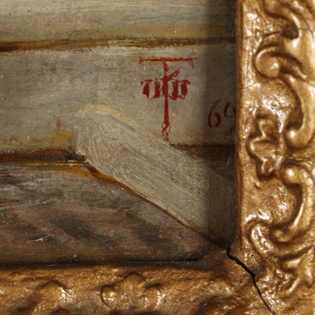 Oil on canvas, 1869, signed with the artist's monogram, retaining a label for The Cooling Galleries, Ltd. of London and Toronto affixed to the verso, presented in an antique frame with gallery plaque.