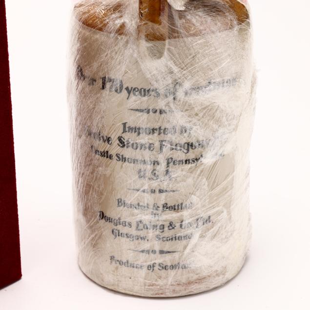 NV, Usquaebach Blended Scotch Whisky, Twelve Stone Flagons, Douglas Laing Co. Ltd., Glasgow, Scotland, 43%, 1977-1982 bottling, full flagon, sealed, includes red felt ocb (1 750 ml)