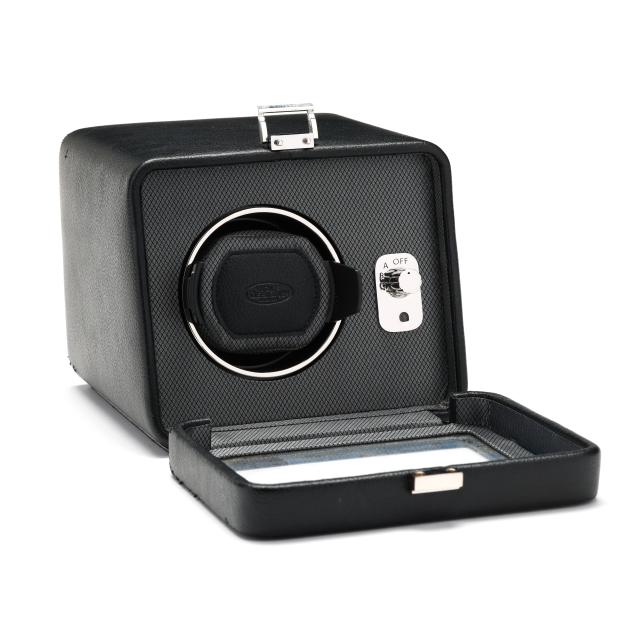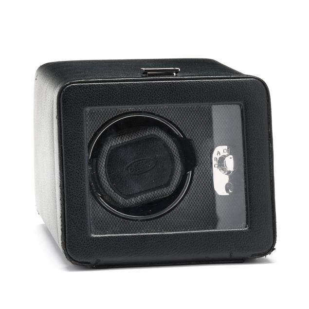 Model number 4525029, black leatherette exterior with acrylic cover, clockwise, counter-clockwise, and bi-directional switch, battery operated with optional AC adapter (not included).