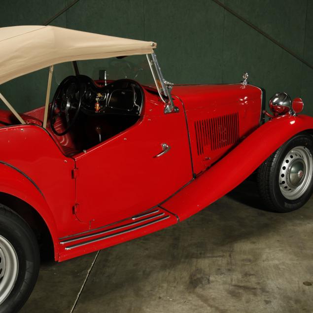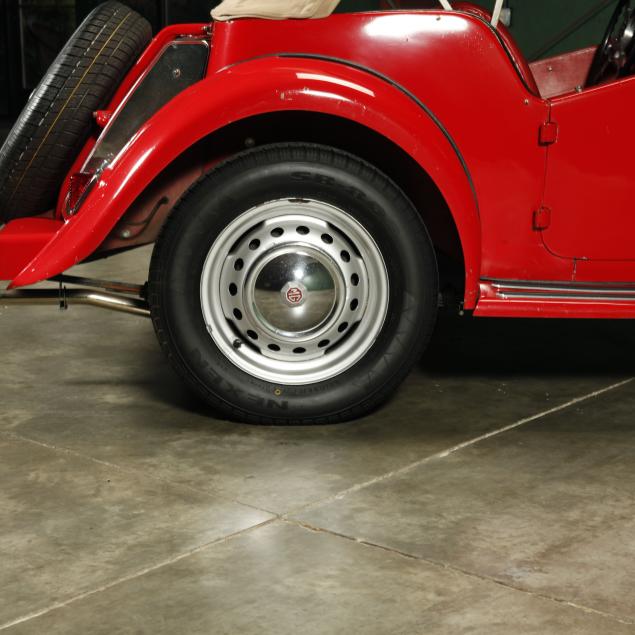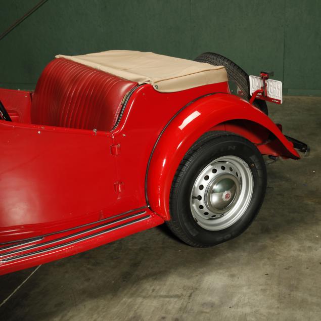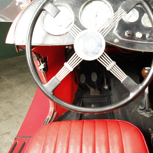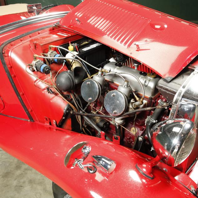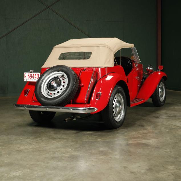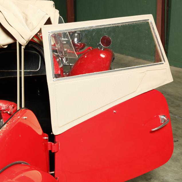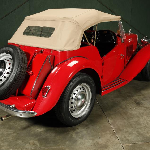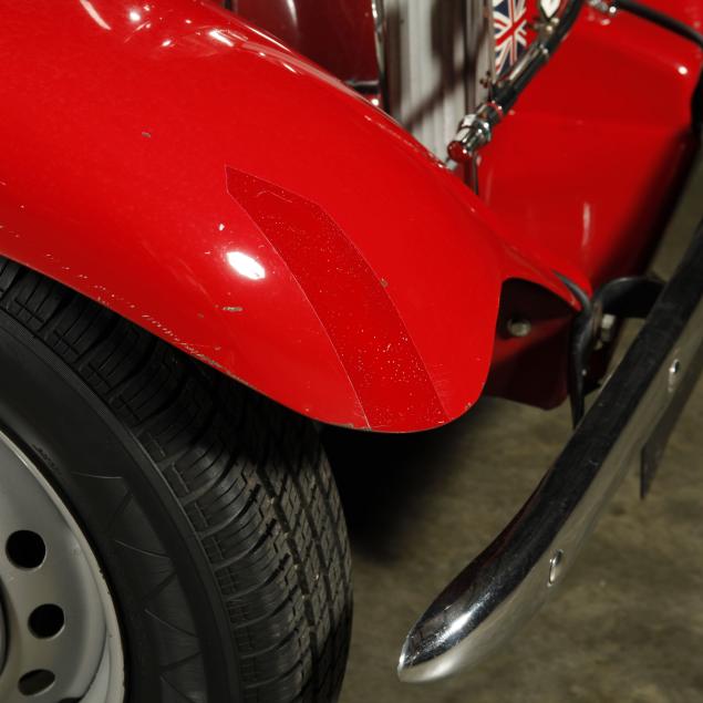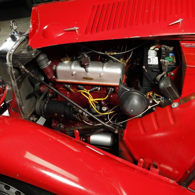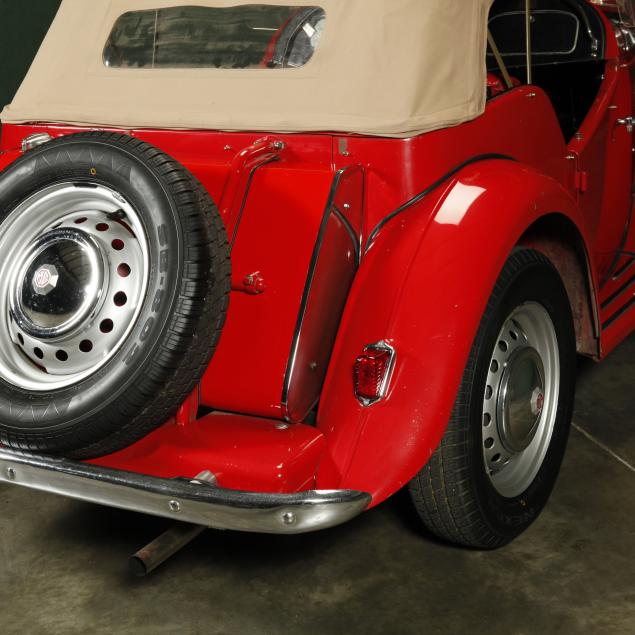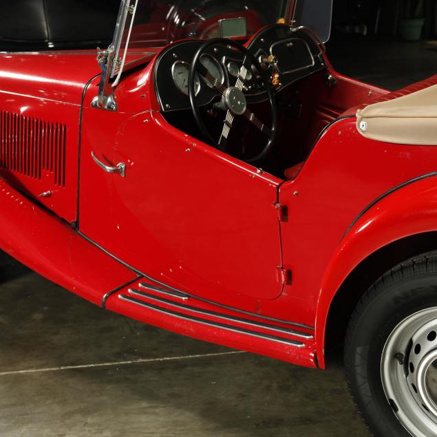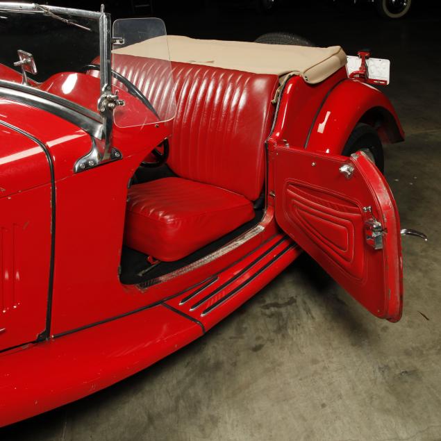 Exterior in red paint, a red interior, and a tan canvas convertible top. A matching tonneau, and side screens are also included.