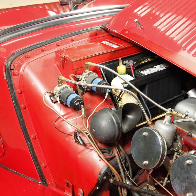 Flywheel failed, and engine was refreshed. The cam was sent to Iskenderian to be resurfaced, lifters rebuilt, and valves resurfaced. Clutch verified as adequate, as well as transmission. The MkII has dual shocks in the rear, the auxiliary/friction shocks are present, but not installed. Front shocks were rebuilt. Converted to negative earth, and fuel pumps rebuilt.