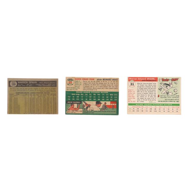 1954, 1955, and 1961 Topps Warren Spahn Baseball Cards