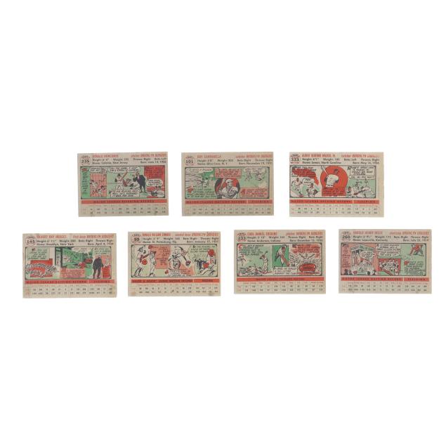 Seven 1956 Brooklyn Dodgers Baseball Cards