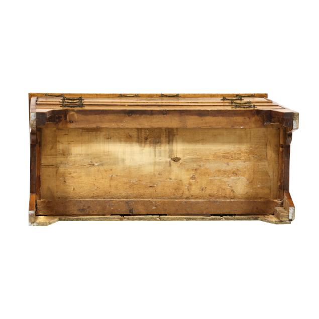 From the Collection of Rose Browning, Hendersonville, North Carolina Top with later one inch strip to back; later pulls cover central hole; later front feet facings.