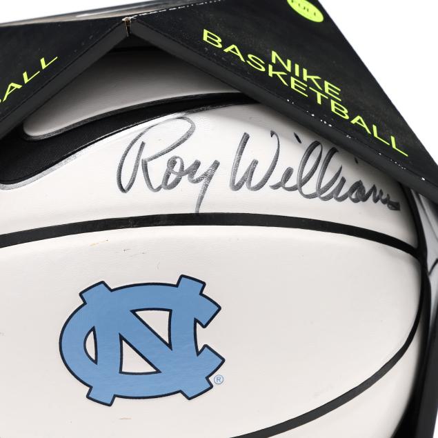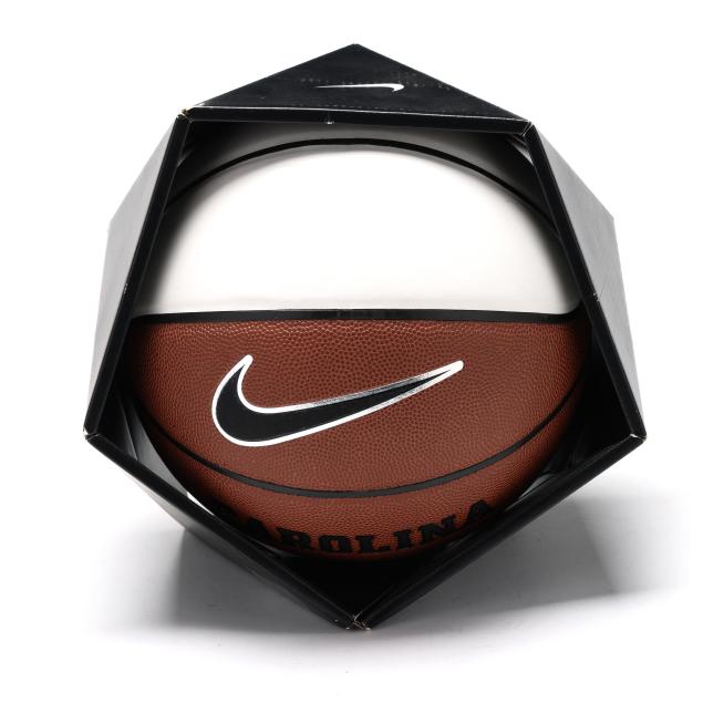 Nike Basketball in box, signed by UNC basketball head coaches Roy Willams and Hubert Davis.