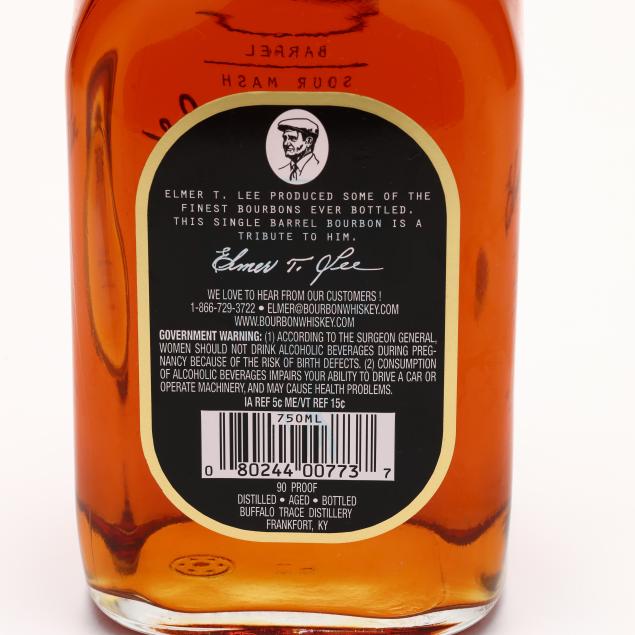 NV, Elmer T. Lee Single Barrel Kentucky Straight Bourbon Whiskey, Buffalo Trace Distillery, Frankfort, KY, 45%, limited production, htms, sealed glass decanter (1 750 ml)
