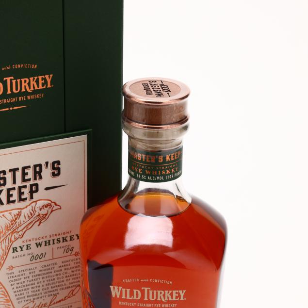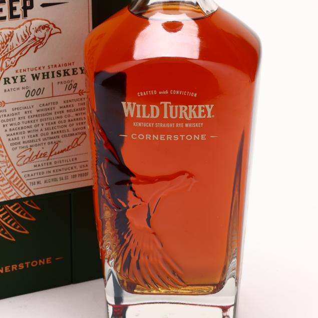NV, Wild Turkey Master's Keep Cornerstone Kentucky Straight Rye Whiskey, 9 Years Old, Lawrenceburg, KY, 54.5%, 2010 bottling, hs, batch no. 0001, sealed glass decanter, ocb (1 750 ml)