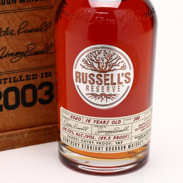 NV, Russell's Reserve Kentucky Straight Bourbon Whiskey, Barrel Proof, 16 Years Old, The Wild Turkey Distilling Co., Lawrenceburg, KY, 44.75%, limited release, distilled 2003, bottled 2020, bottle #500, hs, sealed, owc (1 750 ml)