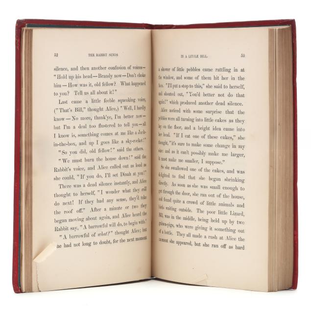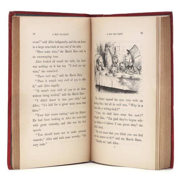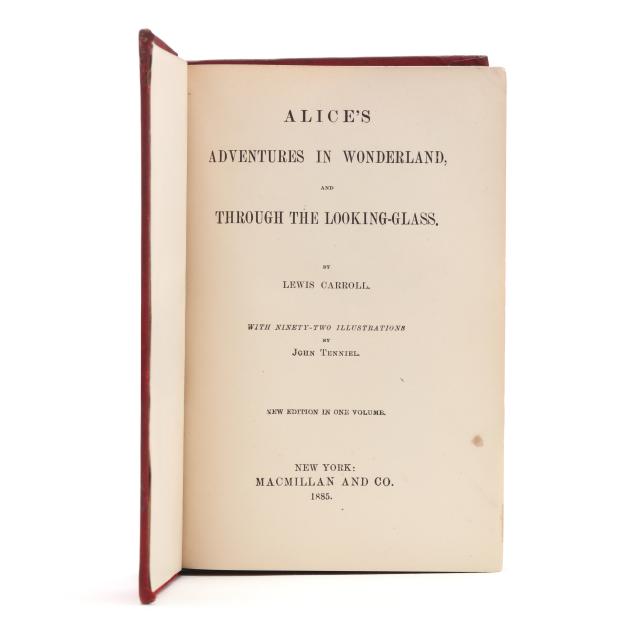 Lewis Carroll [Charles Lutwidge Dodgson]; John Tenniel, illus. ALICE'S ADVENTURES IN WONDERLAND, AND THROUGH THE LOOKING-GLASS. New York: Macmillan and Co., 1885. New edition in one volume. Hardcover. Red cloth-covered boards with blind-stamping, and decorated and lettered in gilt. 8vo; 192; 224pp. plus publisher's ads. With ninety-two illustrations by Tenniel.