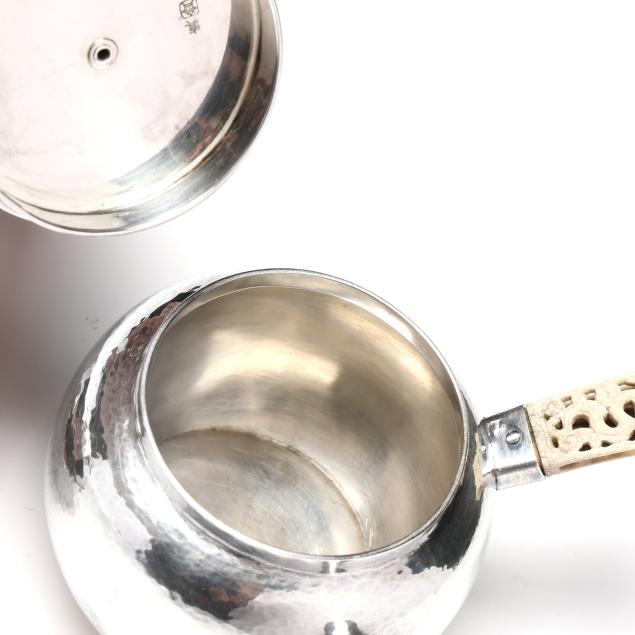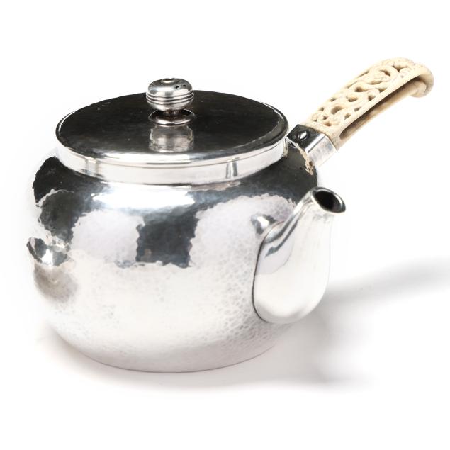 Private Collection, New York and London Good overall condition; wear to underside and looseness to bone handle, looseness to finial of teapot.