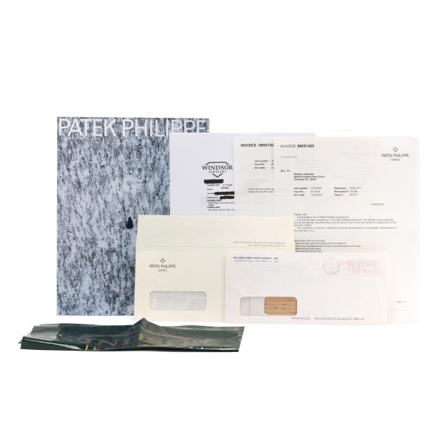 Accompanied by service box, service papers, Patek Philippe service invoice dated May 2022, original purchase receipt from Gübelin dated September 27, 1955, and Patek Philippe Extract from the Archives dated August 28, 2025.
