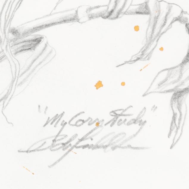 Graphite and watercolor on paper, signed and titled to lower right, inscribed to verso of frame, mounted in a custom framed below glass.