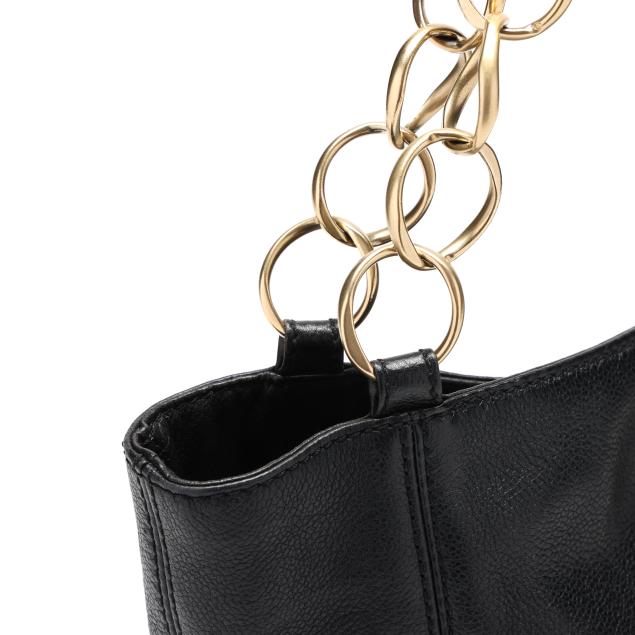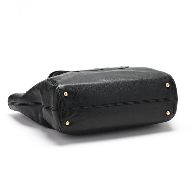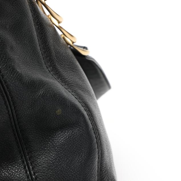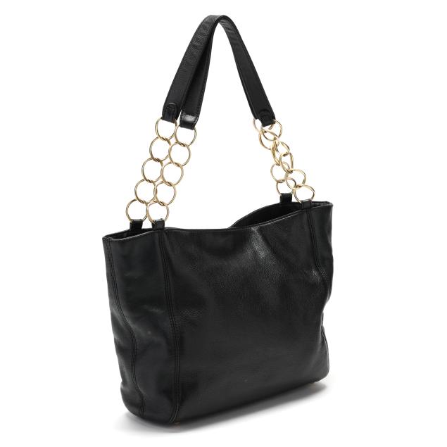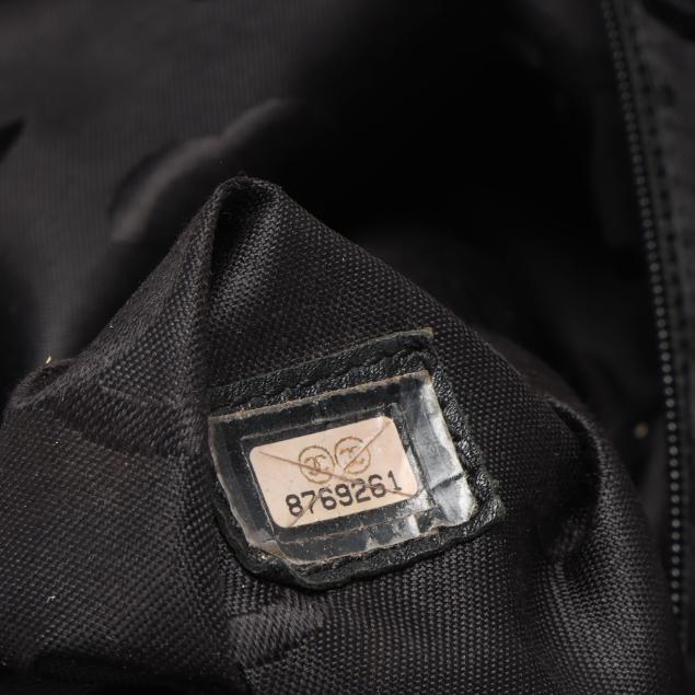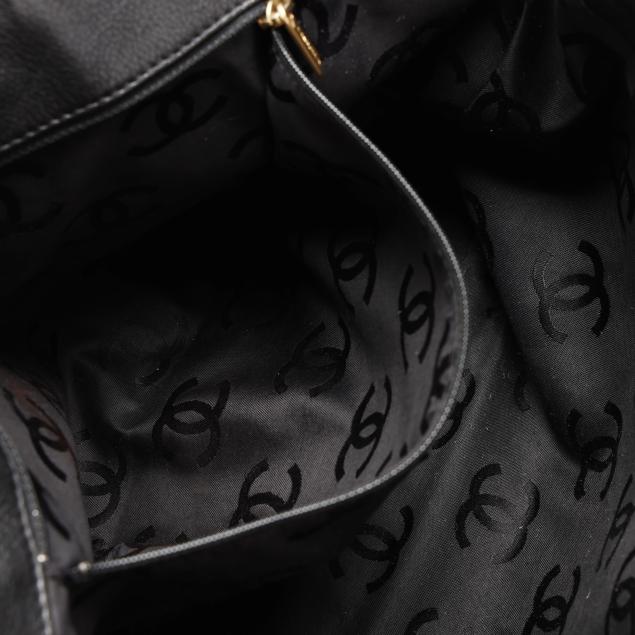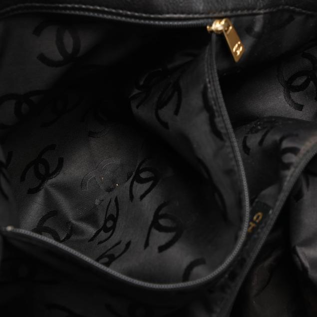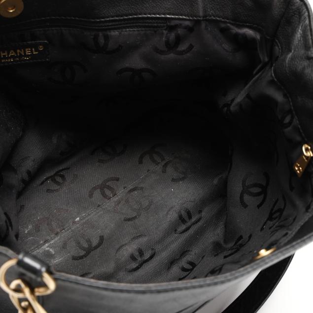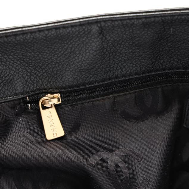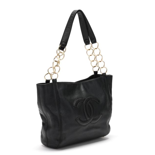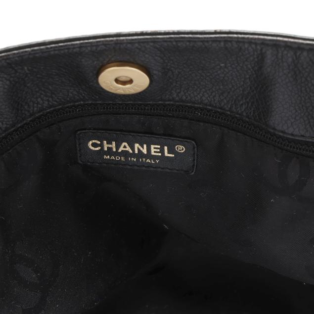 The exterior in black Caviar leather with CC logo to front, gold-tone hardware, and flat leather handles with ring chain, the interior in black monogram textile with two side zipper pockets and leather brand tag stating made in Italy.