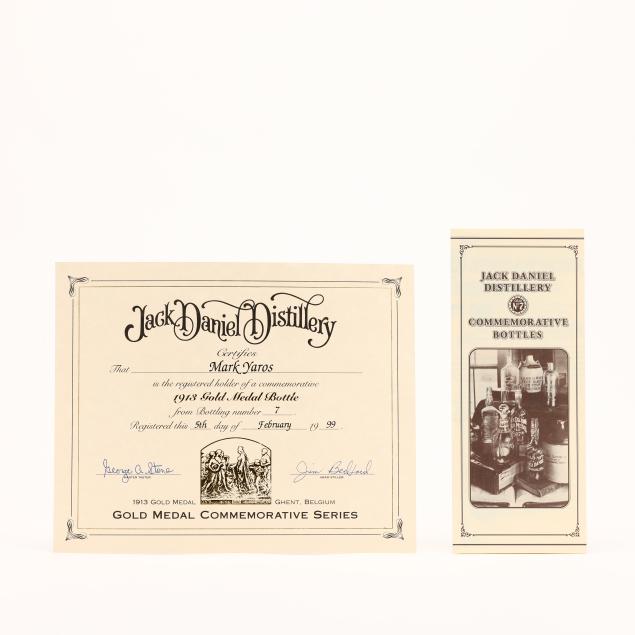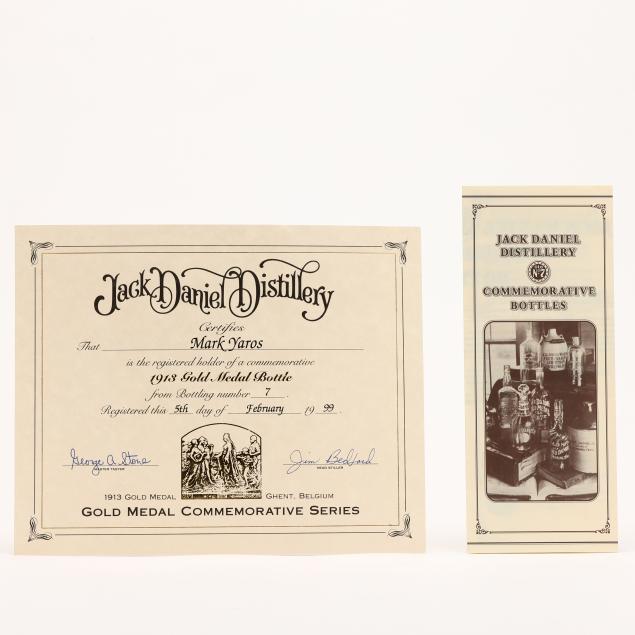 NV, Jack Daniel's 1913 Ghent Belgium Gold Medal Tennessee Whiskey, Lynchburg, TN, 45%, 1998 release, hs, sealed, includes original hanging tag, pamphlet & certificate signed by Jim Bedford/George Stone (1 750 ml)