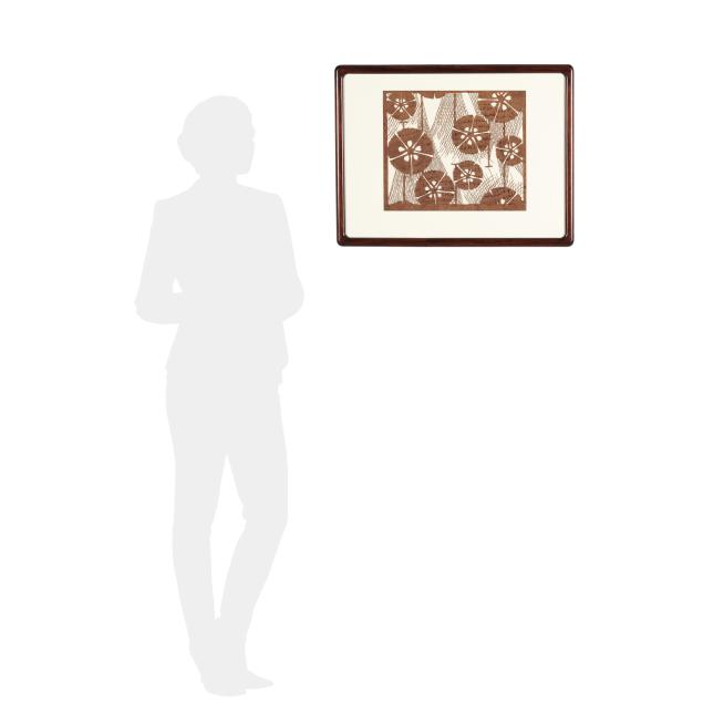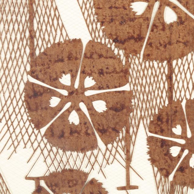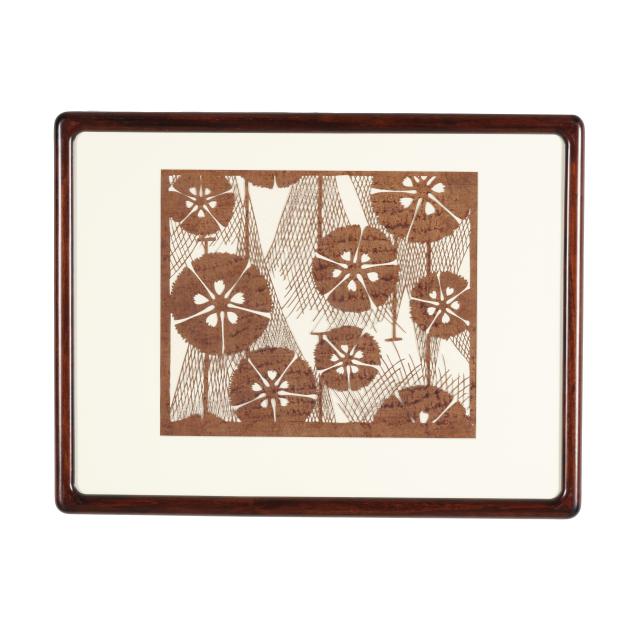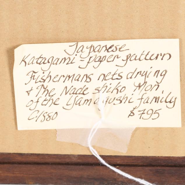 Meiji (1868-1912), finely cut paper stencil, presented under glass over a mat and framed in a lovely dark wood frame with rounded corners.