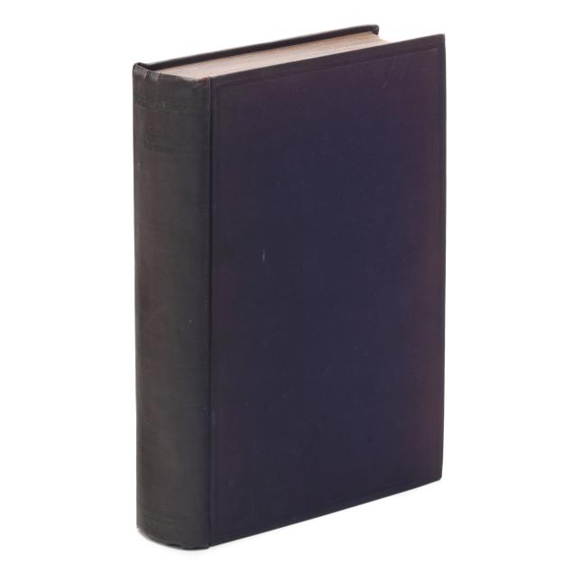 Light wear to boards; spine darkened, edges thumbed with a couple of closed tears, and yellow-green lettering now quite faint; front hinge cracked with partial separation from text block, rear hinge with some soiling; glue residue to inner margin of half-title with associated wear to facing page; interior with typical toning, clean except for a rare spot of foxing and grime, or minor pencil notation; a couple of areas of minor gutter wear; occasional wear to page edges or wear from opening leaves, with a few leaves still partially unopened; lacking dust jacket. A good copy/none.