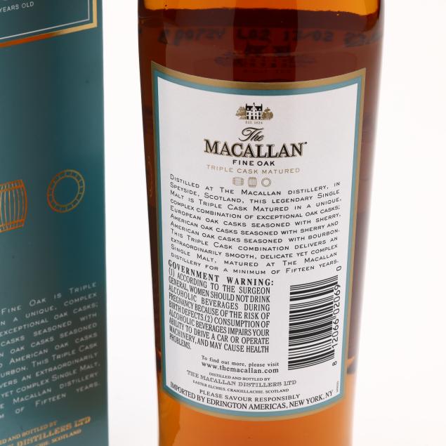 NV, Macallan Fine Oak Single Malt Scotch Whisky, 15 Years Old, 43%, discontinued, into neck, sealed, ocb (1 750 ml)