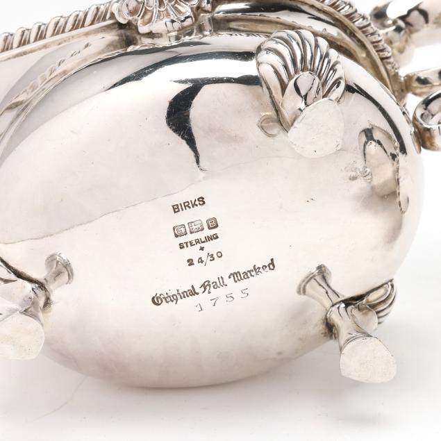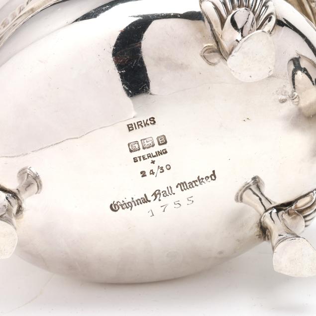 Montreal, pattern number 1755m featuring a gadrooned rim with shell motifs to the rim and knees, raised on stepped feet, not monogrammed.