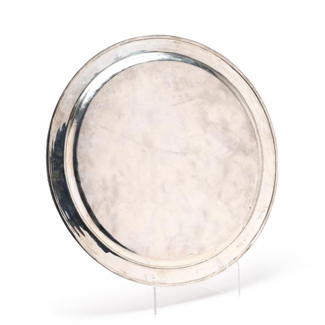 The bowl 14 x 13 in. dia.; The tray 20 in. dia.; the ladle 17 in.