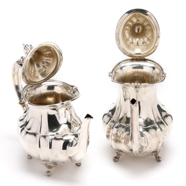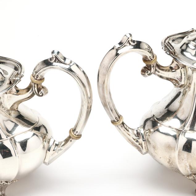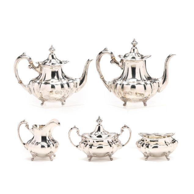Pattern number 2392, including a coffee pot (9 1/2 in.); teapot (9 in.); creamer; lidded sugar bowl; and waste bowl; not monogrammed.