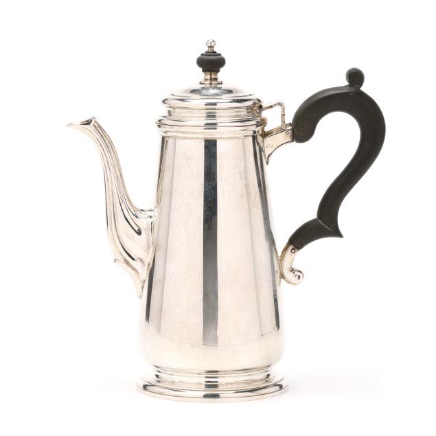 Period marks circa mid 20th century, pattern number 22939, featuring an ebonized wooden handle and uniform finial, not monogrammed.