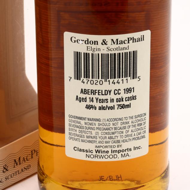 Vintage 1991, Aberfeldy Single Highland Malt Scotch Whisky, Connoisseurs Choice, 14 Years Old, Gordon & MacPhail, Elgin, Scotland, 46%, distilled 1991, bottled 2005, into neck, sealed, ocb (1 750 ml)