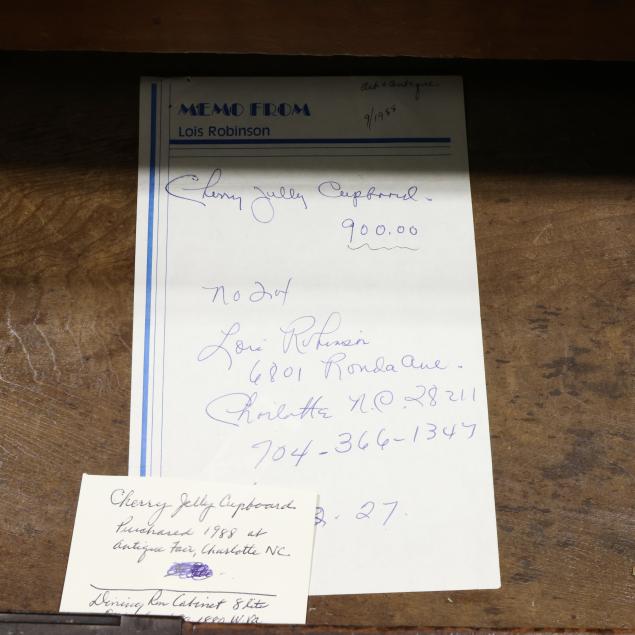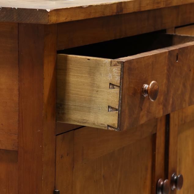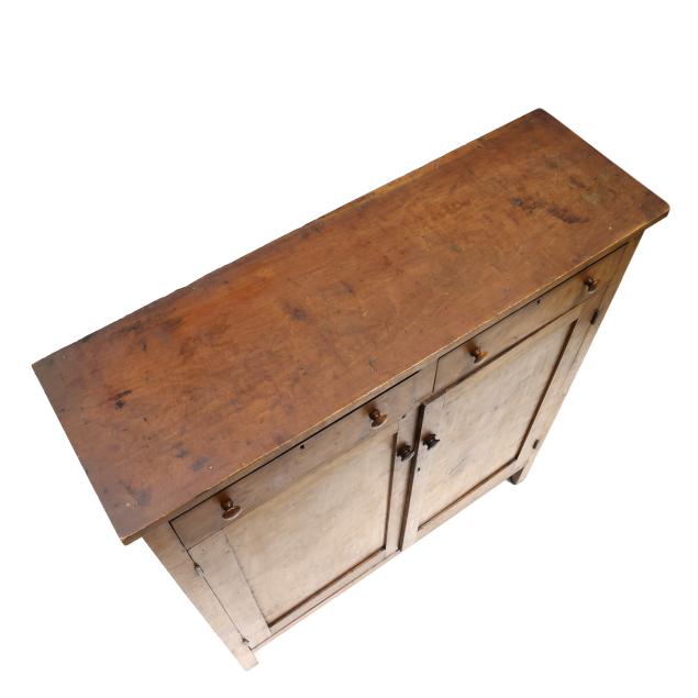 From the Collection of Barbara Grizzle, Chapel Hill, North Carolina Top with staining and edge nicks; later pulls; left door upper edge with old chip; overall good age appropriate condition.