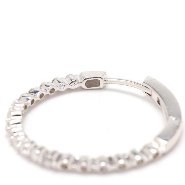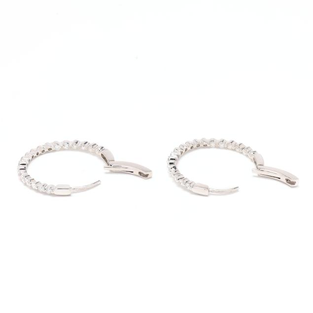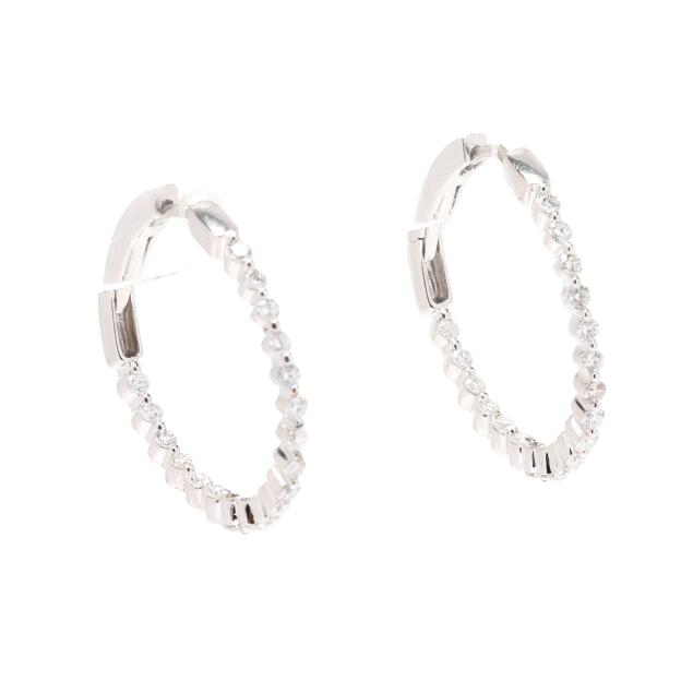 The inside out hoops set with full cut round diamonds weighing approximately .75 total carat (H-I color, I1-I2 clarity), completed with posts and hinged backs, stamped with a maker's mark and 14K / 585.