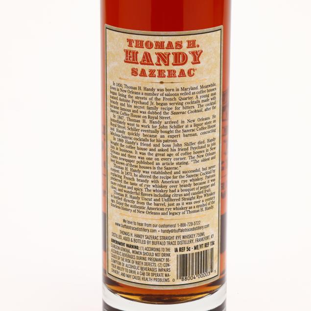 NV, Thomas H. Handy Sazerac Straight Rye Whiskey, Barrel Proof, Buffalo Trace Distillery, Frankfort, KY, 62.85%, distilled spring 2013, released fall 2019, limited Buffalo Trace Antique Collection release, hs, sealed (1 750 ml)