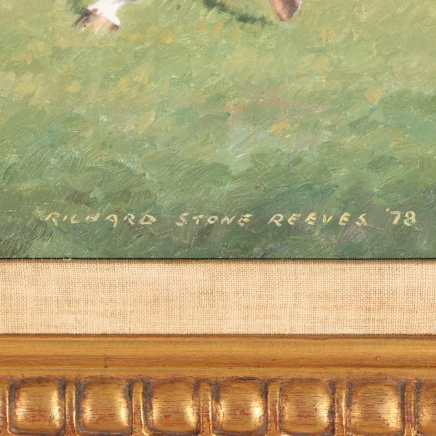 From the Estate of the late Peggy Augustus, Old Keswick, Virginia Richard Stone Reeves was one of the foremost equine portraitists of the 20th century. Born in New York and trained at Syracuse University, Reeves rose to prominence in the late 1940s, quickly becoming the artist of choice for racing’s most distinguished owners in America, Europe, and the Middle East. Over his long career, he painted nearly every major champion of his era, from Native Dancer to Secretariat.