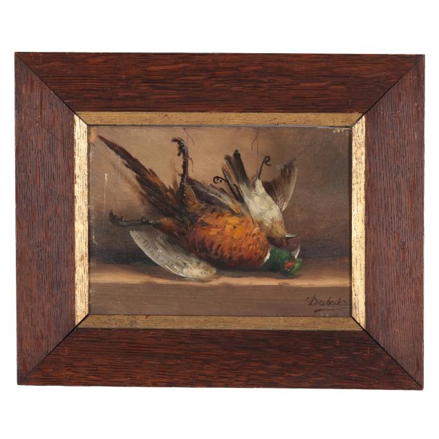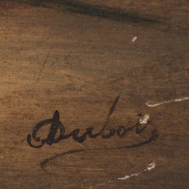 Oil on board, two signed "Dubois" to lower corner, presented in walnut framing.