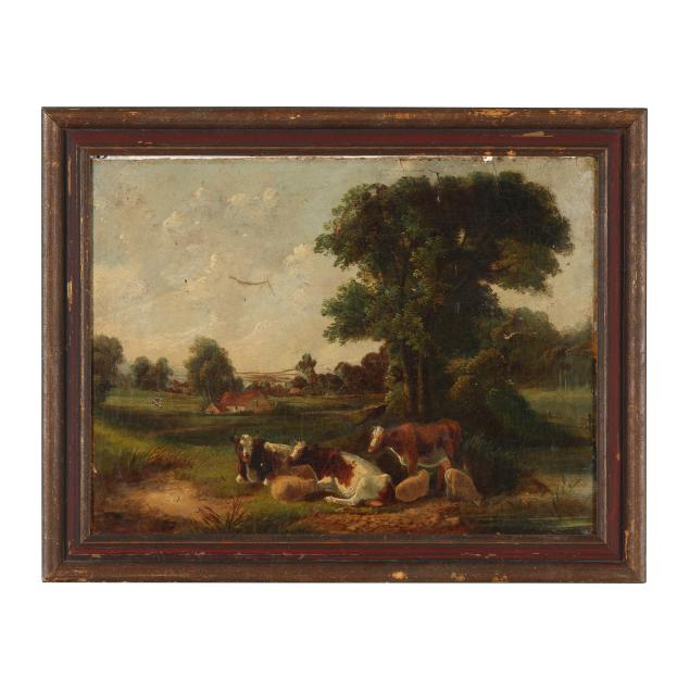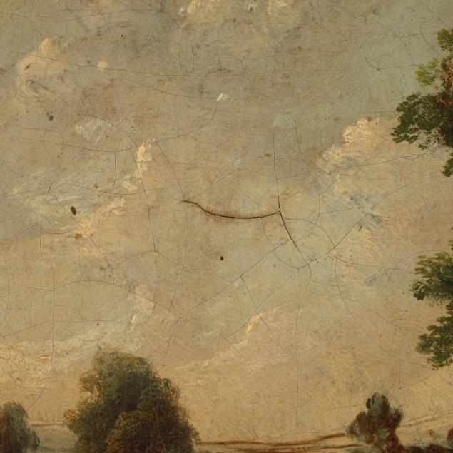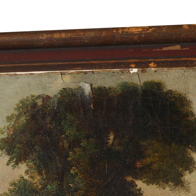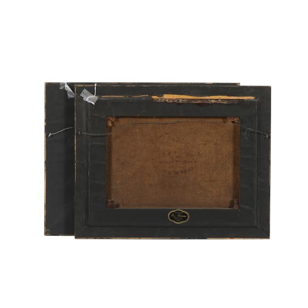 From the Estate of the late Peggy Augustus, Old Keswick, Virginia One had been laid on board, with age cracking, flakes, and losses; the other with age cracking and puncture to lower left of canvas.