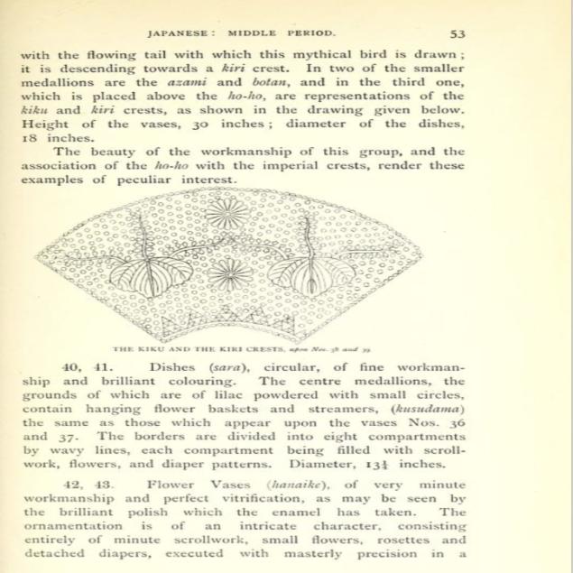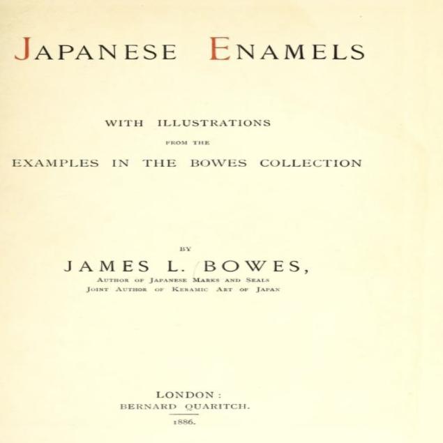James Lord Bowes (1834-1899) was a collector of Japanese art over three decades in England. He published widely on Japanese art including an 1886 book on Japanese enamels in his collection in which the current dish on offer is mentioned.