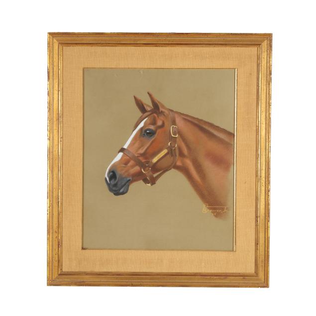 Allen F. Brewer, Jr. was an American equine artist celebrated for his anatomically precise and spirited portraits of Thoroughbreds and Standardbreds. Born in Massachusetts and educated at Yale’s School of Fine Arts, he combined his deep knowledge of horses—gained through riding, training, and even dissecting a horse for study—with strong artistic training to create works for breeders and collectors. A WWII veteran who used his art skills in service, he later lived in Kentucky, where he trained and drove Standardbreds while building his reputation as one of America’s leading horse painters. After his untimely death in a plane crash, he was honored posthumously with induction into the Harness Racing Museum Hall of Fame.