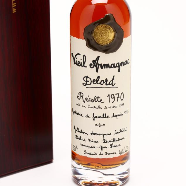 Vintage 1970, Delord Vieil Armagnac, France, 40%, special 2018 bottling, vts, sealed wax capsule, includes corkscrew, temperature gauge, wine foil cutter & presentation case (1 200 ml)
