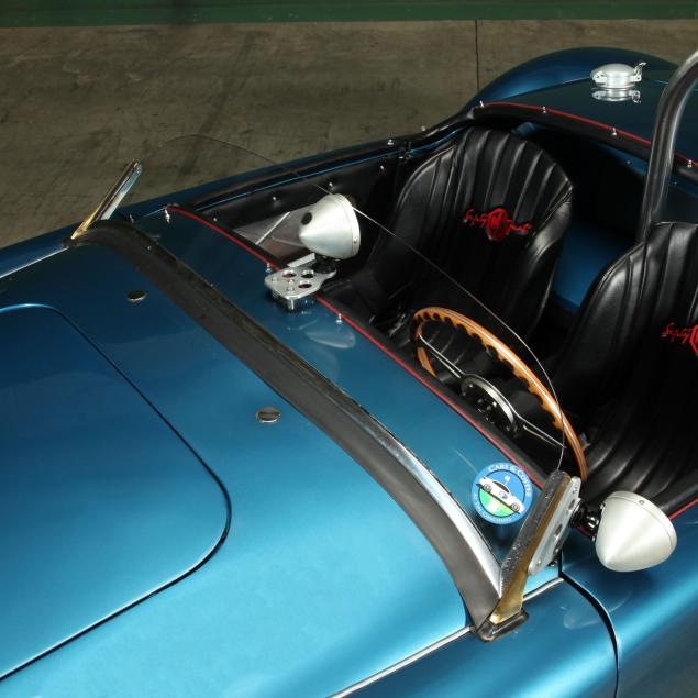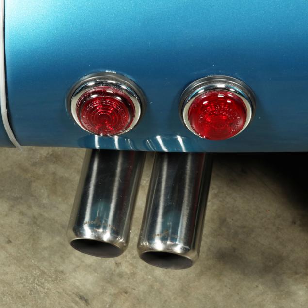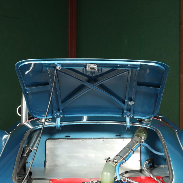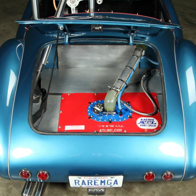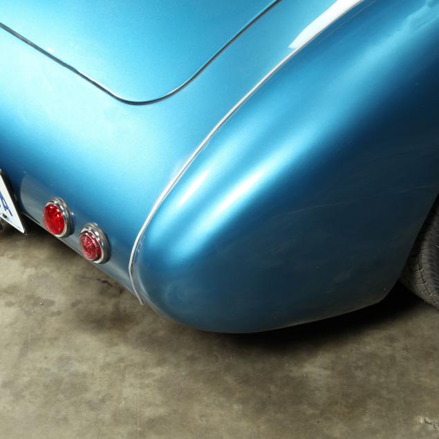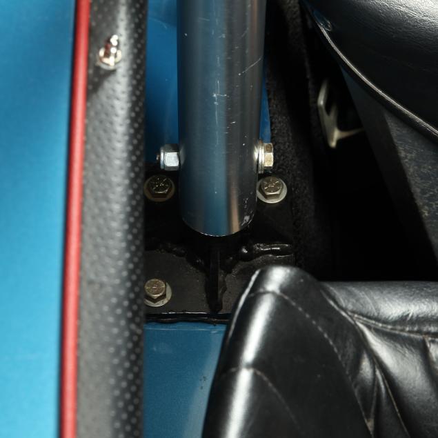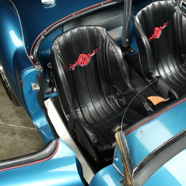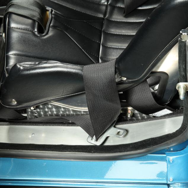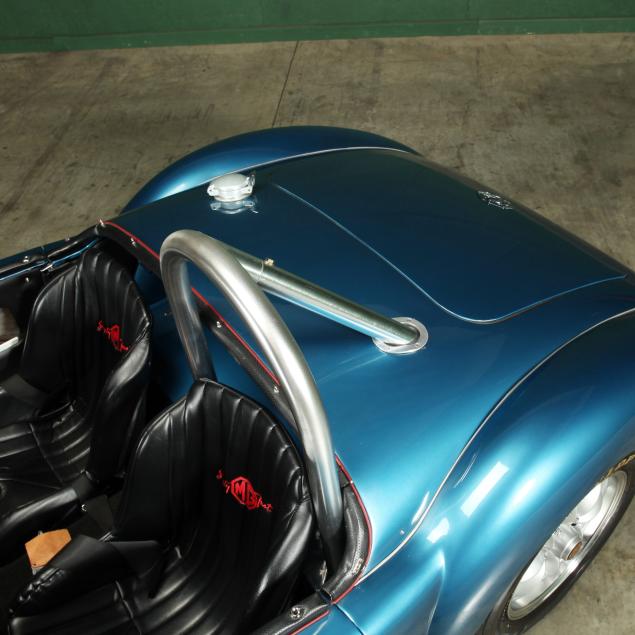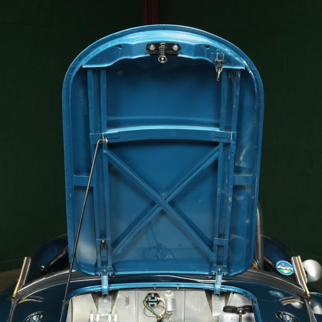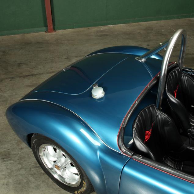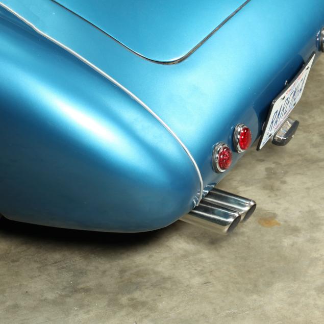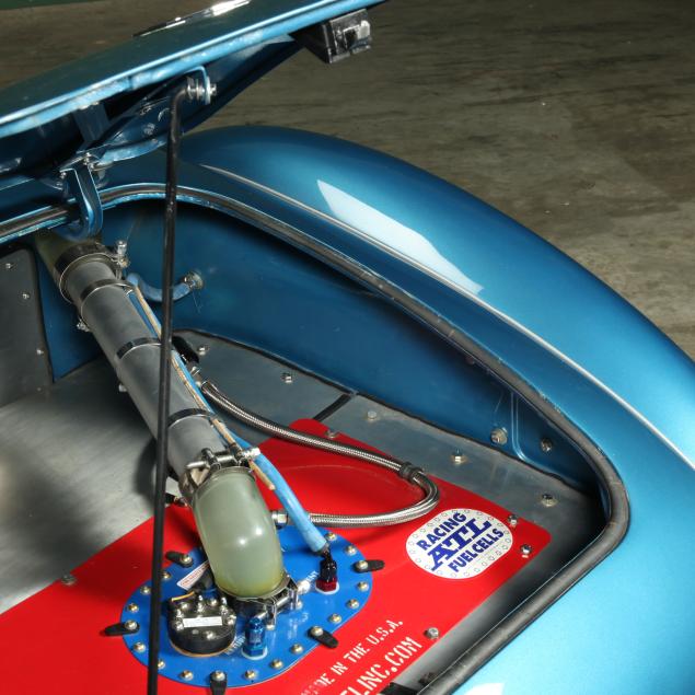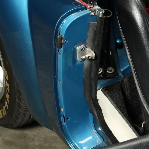 The exterior in Cobra Blue, it was originally red. The bumpers were removed, and roll pans were fabricated. Aluminum racing seats installed with custom leather covers. Competition racing seat belts were installed. The roll bar is removable, and features a tonneau cover, and a high quality car cover.