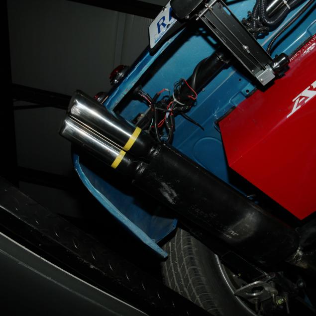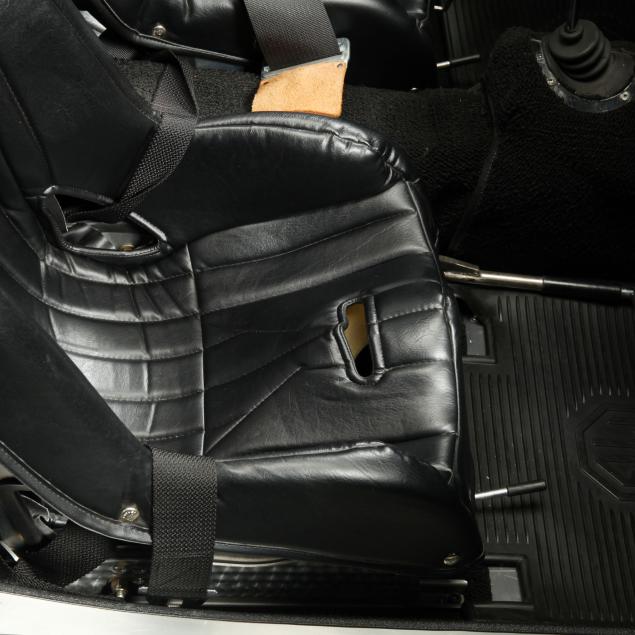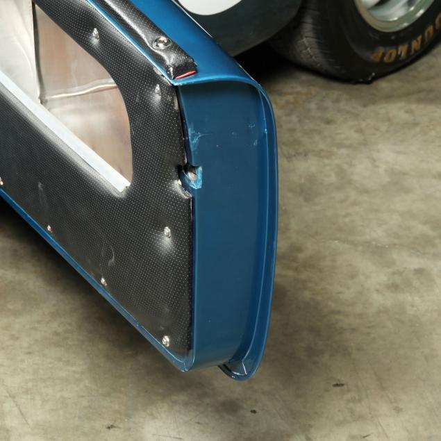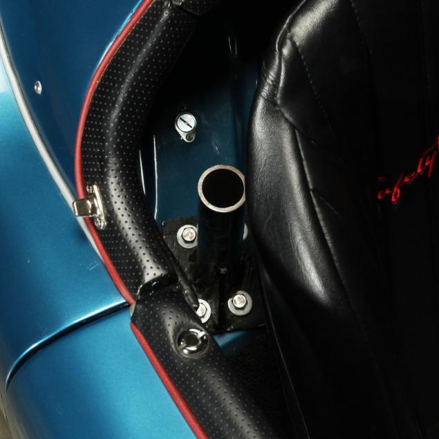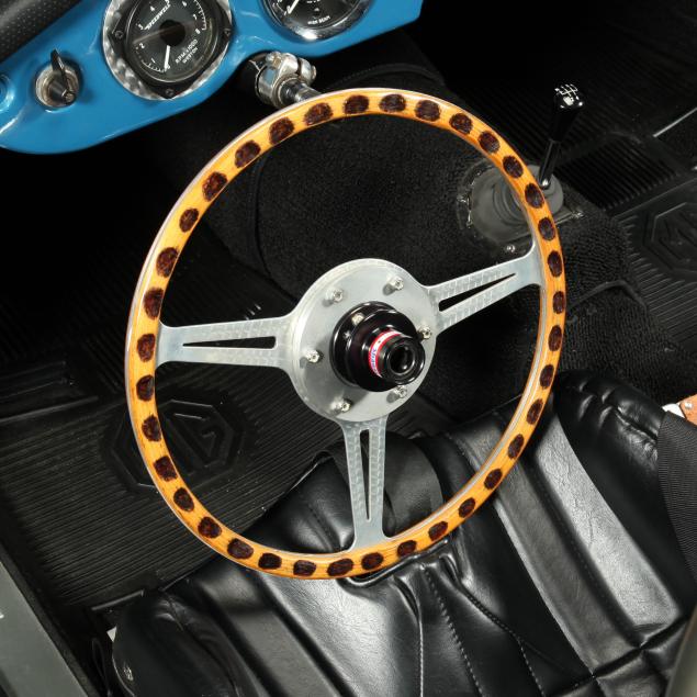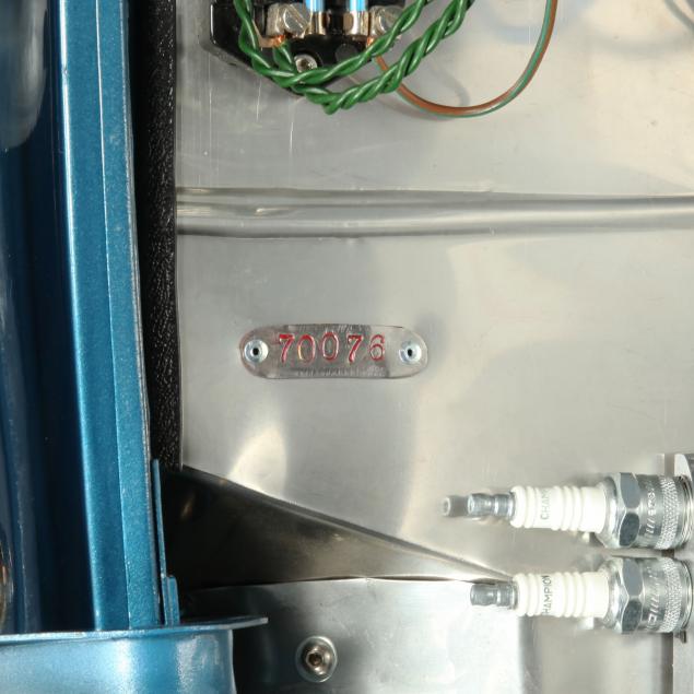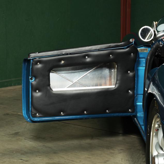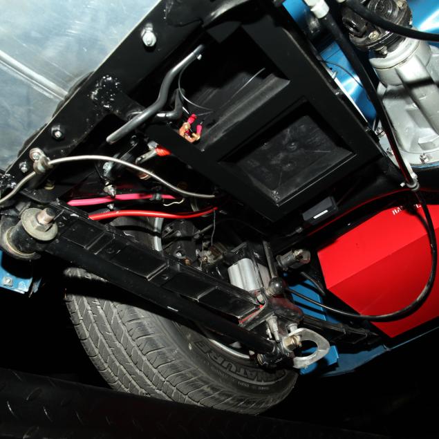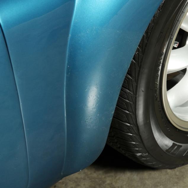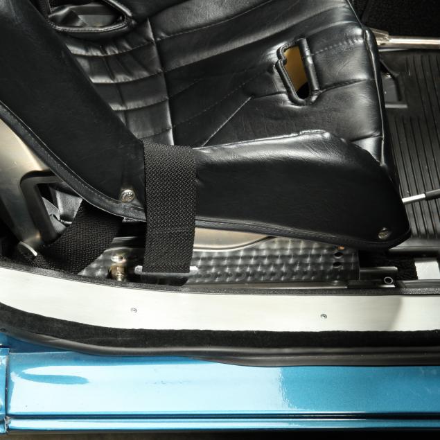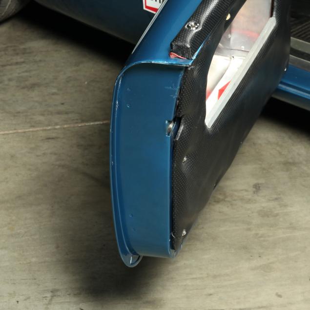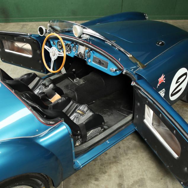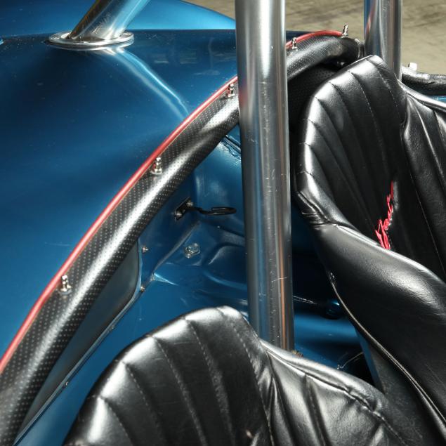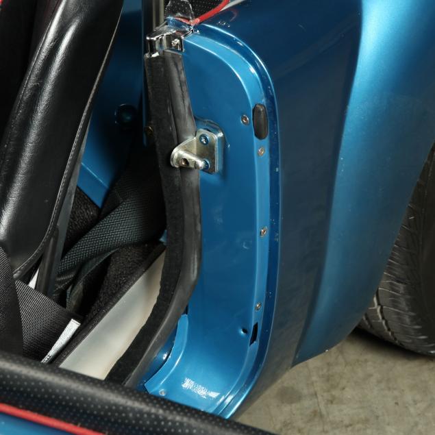 The exterior in Cobra Blue, it was originally red. The bumpers were removed, and roll pans were fabricated. Aluminum racing seats installed with custom leather covers. Competition racing seat belts were installed. The roll bar is removable, and features a tonneau cover, and a high quality car cover.