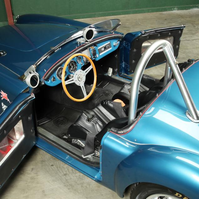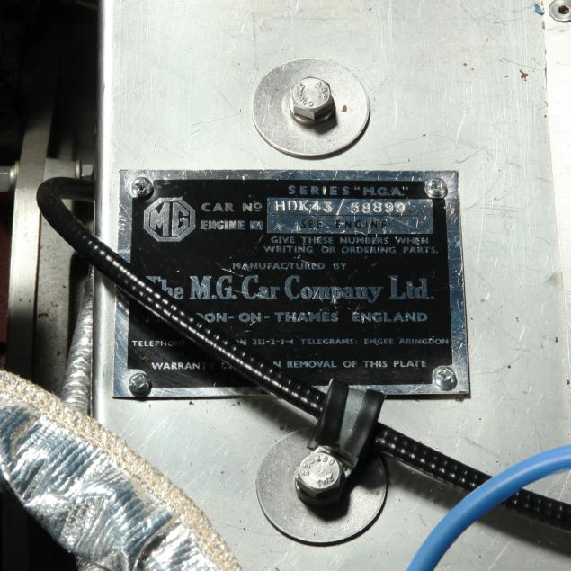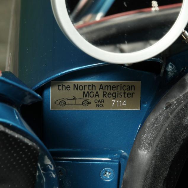 Previously from the collection of Judy James with ownership since 1964, and was successfully campaigned in hill climbs and speed events throughout the 70s. She continued to race in other cars. She found SCCA, and raced a Honda Civic and a Trans Am Camaro to many track records, awards, and championships. She was the National Solo II champion in 1976 in the Honda, and was awarded SCCA Driver of the Year. The car was moved many times on its jackstands, until Judy's retirement to Southport, North Carolina in 2010. The MGA underwent a five-year, frame off restoration. Her idea was to restore the car to 50s/60s racing specs. This included vintage bomber seats, a cut down windshield, and racing wheels. A fuel cell is installed in the trunk and a single/removable hoop roll bar was added. the car isn't currently legal for racing spec, but can be licensed for the street. Extensive documentation of the rebuild is present in a binder with receipts, and tech sheets as well as copies of the original ownership documents.