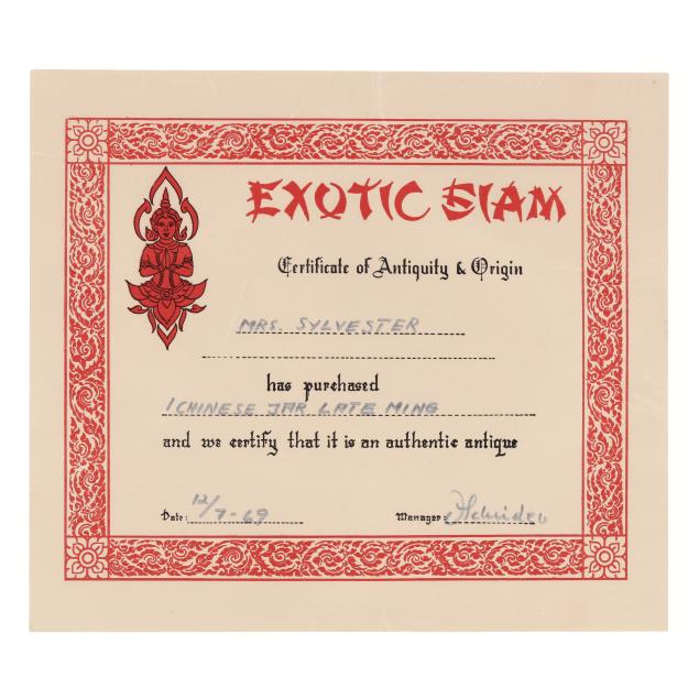 Collection of Mr. John Sylvester, Jr. Purchased in Bangkok in 1969.