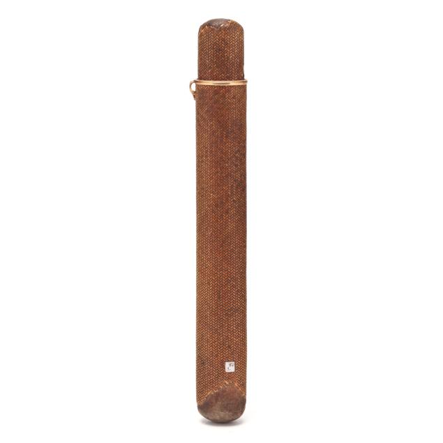 Collection of Mr. John Sylvester, Jr. Rattan with overall fading consistent with age; some loss to rattan at the top and bottom of case.