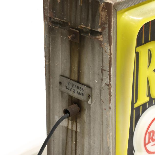 From the Collection of Wade Woodleif, Henderson, North Carolina Some rust spotting to metal; sign illuminating at time of review.