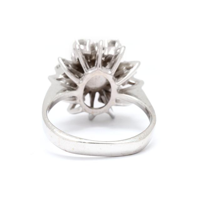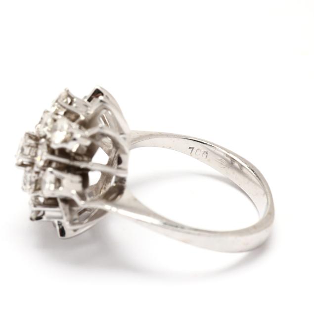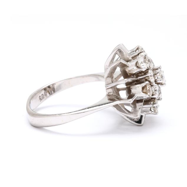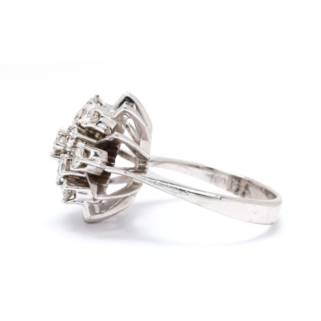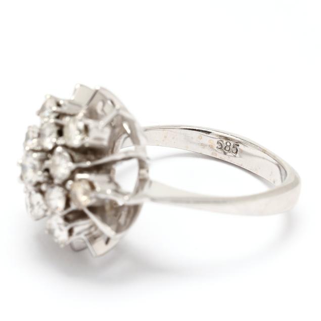 In a starburst design, set with full cut round diamonds weighing approximately 1.10 total carats (H-I color, SI1-SI2 clarity; one diamond O-P color), stamped 585 / 700 and with a maker's mark.