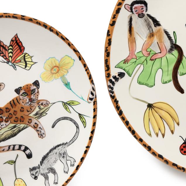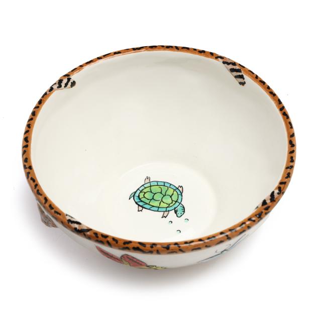 2006, hand-painted ceramic, (46) pieces to include (11) dinner plates (11 in.); (20) salad/dessert plates (8 1/8 in.); (9) soup/cereal bowls (6 5/8 in.); and (6) footed mugs (4 in.), all marked to underside.