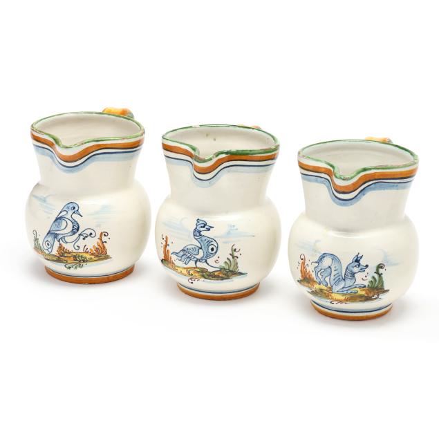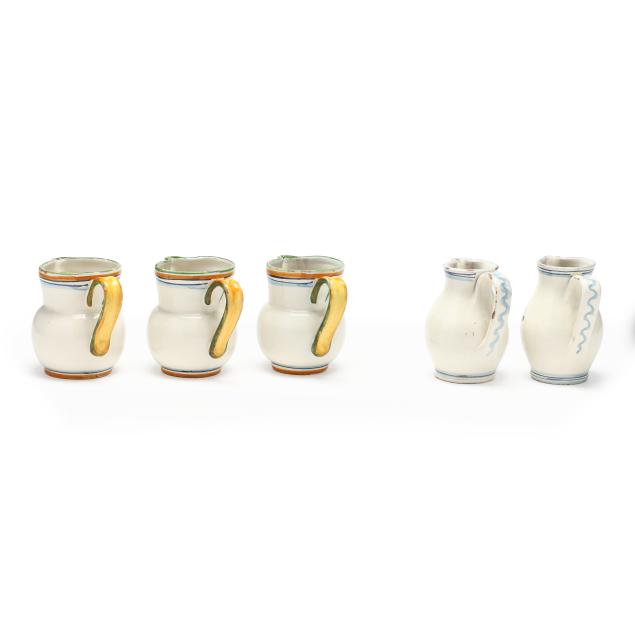 From the Estate of the late Peggy Augustus, Old Keswick, Virginia All with scattered glaze chips to rim, base, and handle; one with hairline to handle; one with area of loss to center underside.