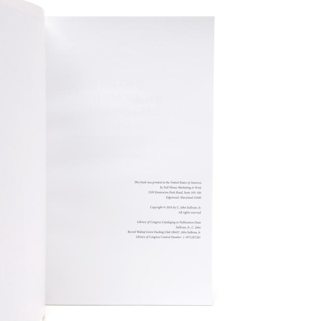 Record Walnut Grove Ducking Club 1864 (C. John Sullivan, 2016, softcover in side stapled wraps, no. 37 out of 500 copies, signed by Sullivan on rear limitation);