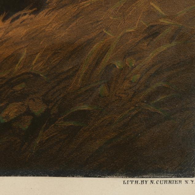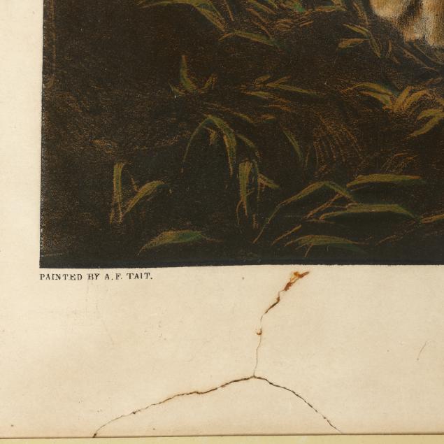 Hand-colored lithograph, 1856, after Arthur Fitzwilliam Tait (American, 1819-1905), published by Currier & Ives, New York, matted and framed below glass.