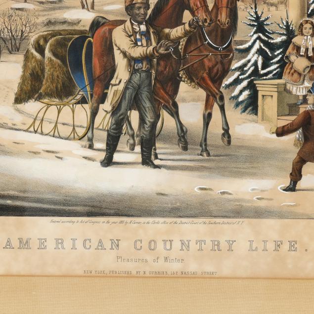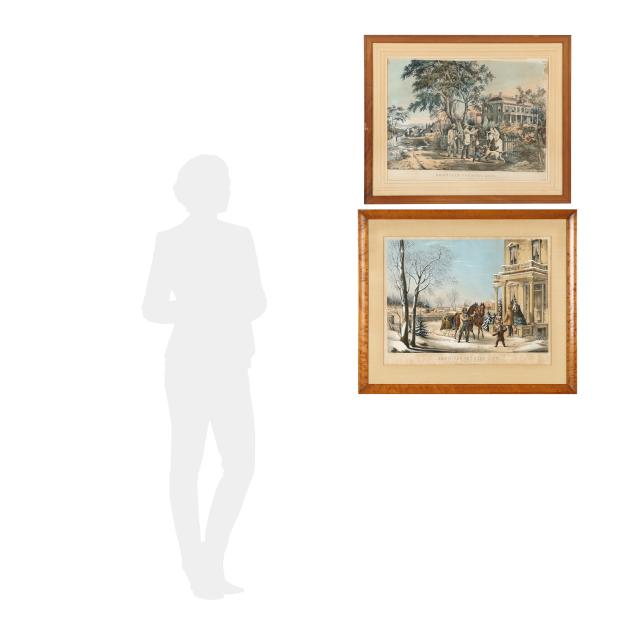 Pleasures of Winter, published by N. Currier, New York, both framed under glass.