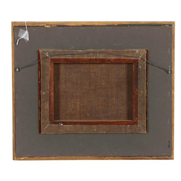 From the Estate of the late Peggy Augustus, Old Keswick, Virginia The painting has been wax lined, with age cracking and areas of retouching visible under UV light inspection.