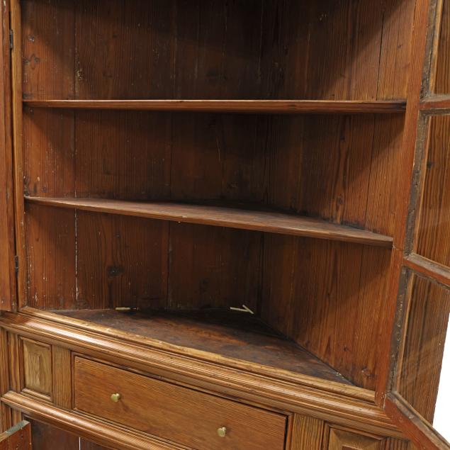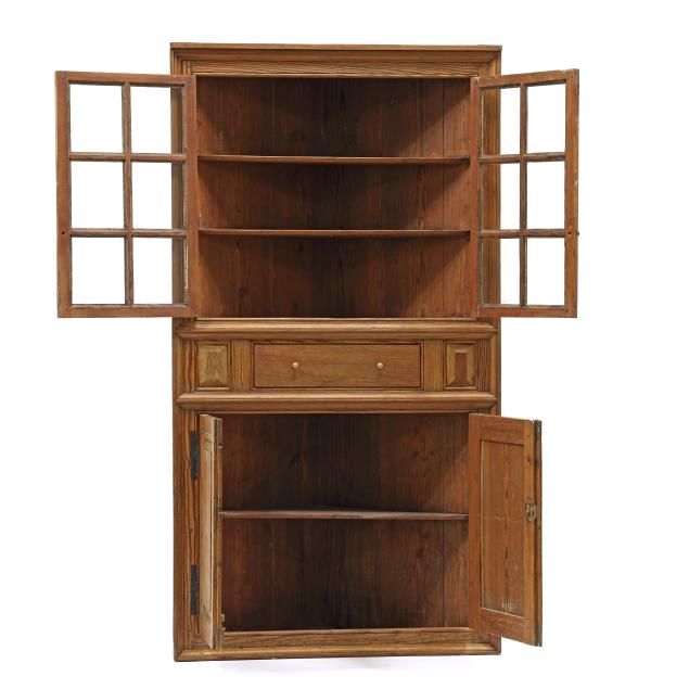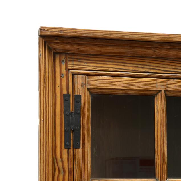 Attributed to Surry County, second half 18th century, one part form, two upper cabinet doors each with six window lights and molded mullions, shelved interior, high waist with central drawer flanked by raised panels, above two lower hinged raised panel cabinet doors, shelved interior, the case with molded edge frame.