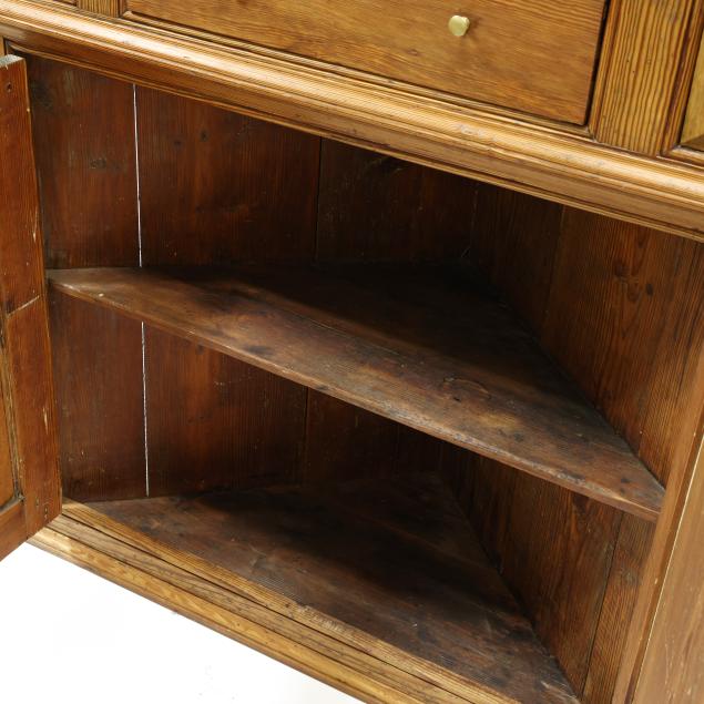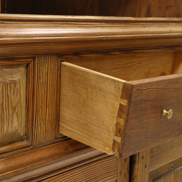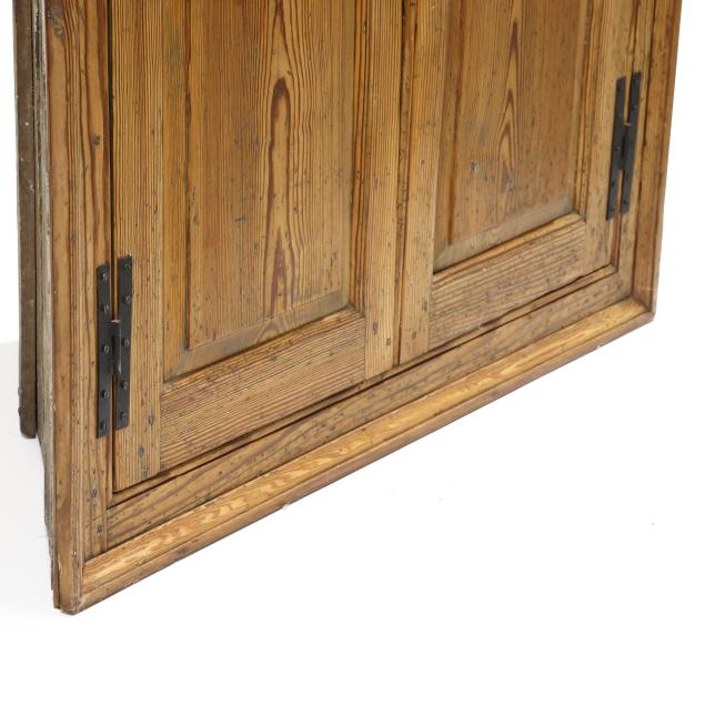Cupboard was originally a built-in, now with some repairs and restoration performed by Andrew Ownbey of Long Leaf Antiques, including: original back boards reset; original hinges with later screws; later drawer; later raised panels to waist.